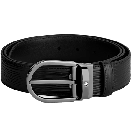 Черный кожаный ремень с подковообразной пряжкой 35мм от магазина премиальных ручек Premium Pens в Арзамасе.