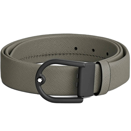 Кожаный ремень 35 мм из кожи серого цвета, пряжка в форме подковы от магазина премиальных ручек Premium Pens в Арзамасе.